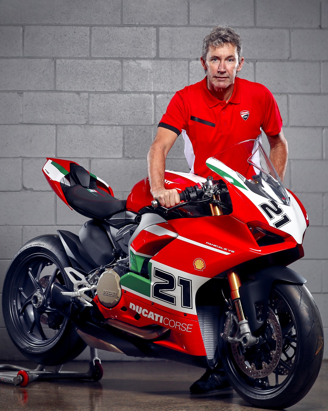 The new Panigale V2 Bayliss 1st Championship 20th Anniversary celebrates one of the most successful riders of all time and the symbol of an entire community: Troy Bayliss. A special motorcycle, manufactured in a numbered series, the pure expression of Ducati sportsmanship and a tribute to a timeless passion.