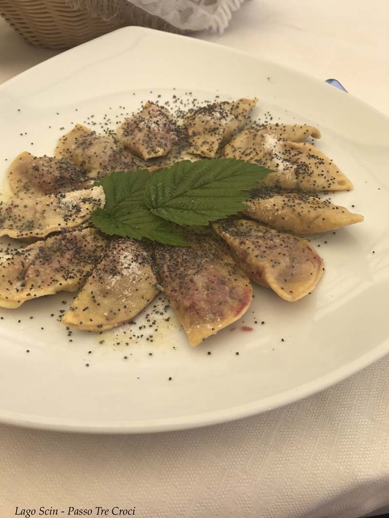 Moje omiljeno mjesto za odmor je restorančić uz jezerce “Lago Scin” pri dnu prijevoja Tre Croci, kilometar ili dva prije Cortine. Izvanredna autohtona kuhinja i mjesto za preporučiti . Najbolje je biti tu malo prije podneva, jer oko 13 sati treba krenuti dalje kako bi se stiglo do Stelvia predvečer.