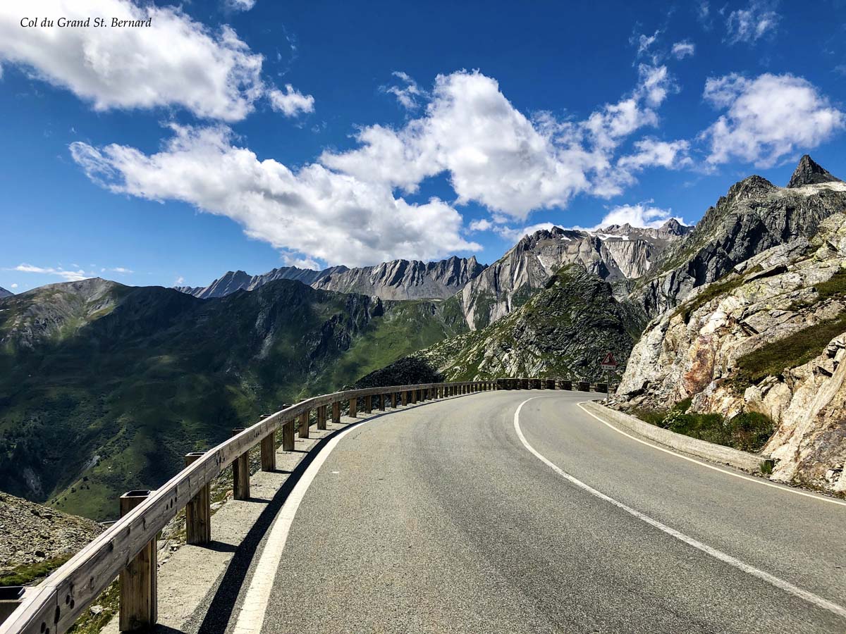 Nakon što smo prošli švicarske Alpe, put prema francuskim prijevojima vodi cestom po nizinama koje se protežu od Furkapassa prema Martignyu. Treba nanizati otprilike stotinjak poprilično dosadnih i toplih kilometara, ali to je jedini put. Iz Martignyja se ide preko prijevoja Col du Grand st. Bernard gdje pri prijelazu preko vrha uz predivno jezero ulazimo u Italiju, ali se, zapravo, već tu osjeti francuski ugođaj.