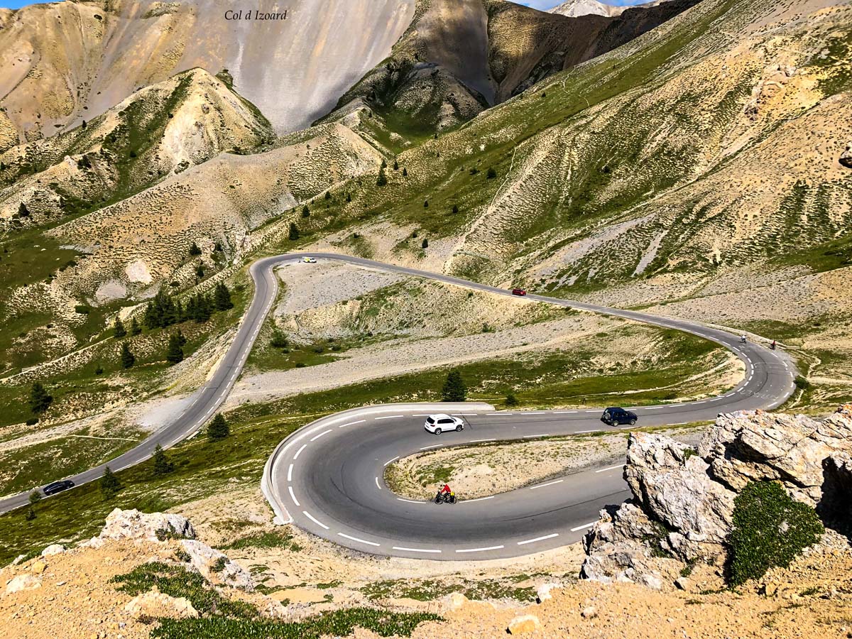 Izoard je na vrhu kao planina od kamena i pijeska što se najbolje vidi pri spuštanju na drugoj strani gdje par stijena, koje se uzdižu uz cestu, izgledaju kao da ih je oblikovao vjetar koji ovdje skoro uvijek puše. Uz takav krajolik, spuštanje sa Izoarda je posebni doživljaj, pri čemu je asfalt odličan, a zavoji savršeno poredani.