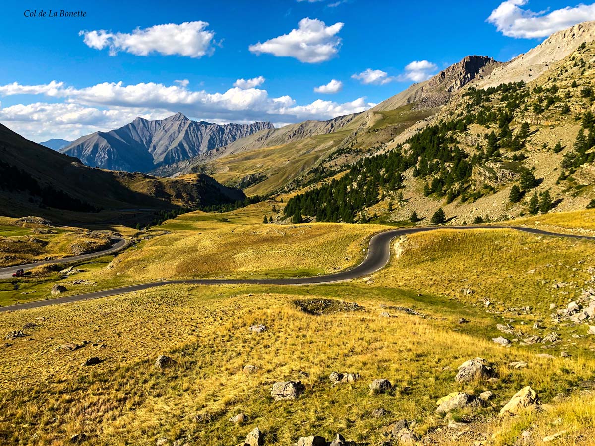 S ovim prijevojem već smo izašli iz Savoije, i sada smo u Alpama Provanse koje se vežu na Azurnu obalu tako da se osjeti toplija klima i mediteranski ugođaj. Bez obzira na blizinu obale, ovdje se nalazi najviši prijevoj Col de Bonette s 2.802 metara nadmorske visine, a prema kojem krećemo zavojitom cestom u dolini. Ta cesta je na nekim mjestima uklesana u stijene i svako toliko začinjena kamenim tunelom u stilu Rute Napoleona. Slijedi Col de Vars preko kojeg je sjajna vožnja s malo lakšim zavojima, a to je i pravi uvod za Bonette na koji se kreće iz mjesta Jausiers.