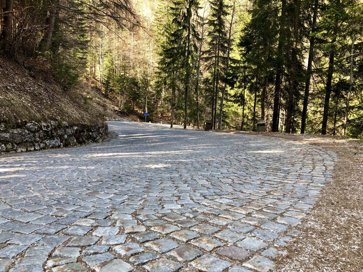 I tako stižemo na vrh, pri čemu treba napomenuti da je ovaj prijevoj visok 1.611 metara zvan i Ruska cesta jer su je, uz visoku cijenu, sagradili ruski vojnici koji su bili ratni zarobljenici Austrougarske Monarhije u 19. stoljeću. Nitko ne zna točan podatak, ali pretpostavlja se da je oko 380 ljudi poginulo što od lavina što od hladnoće, o čemu najvjernije svjedoči kapelica na 1.200 mnv pri spuštanju prema Kranjskoj gori. Nju su sagradili ruski zarobljenici i baš zato je zanimljivo stati i pogledati sasvim drugačiju i atipičnu kapelicu za ovo područje.