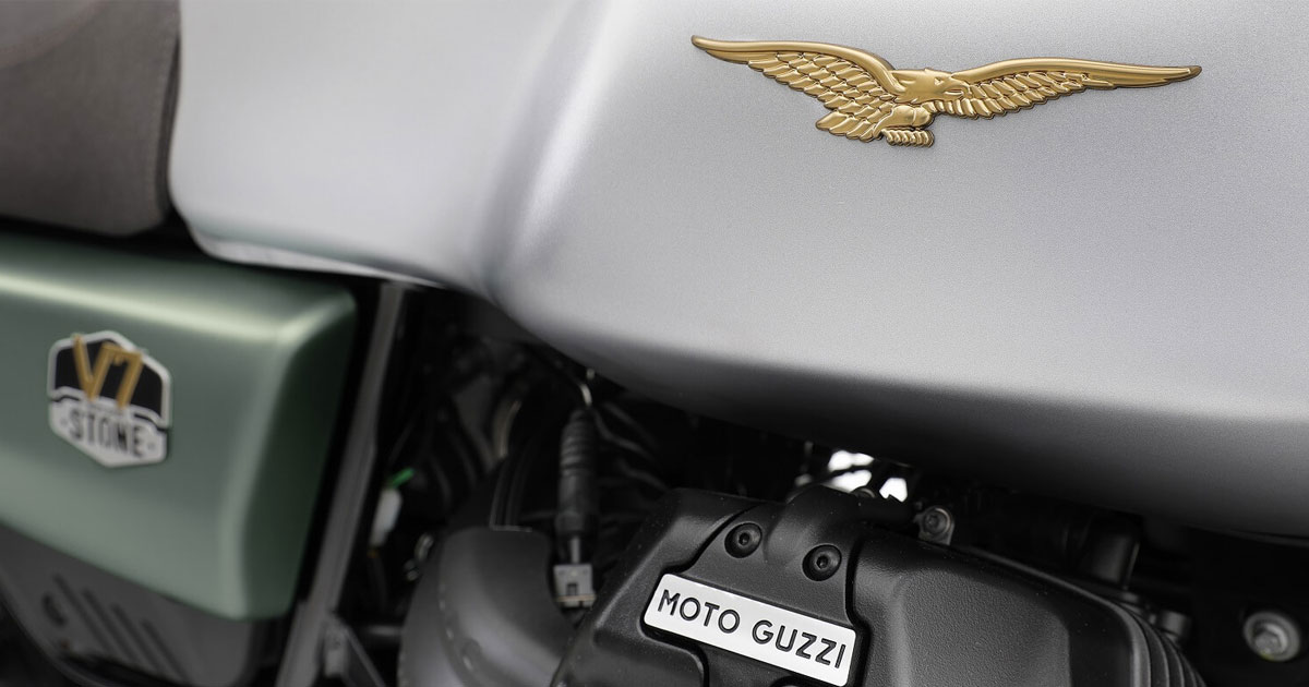 Zelena je isto tako prva boja kojom je Normale, prvi Moto Guzzi, bio ogrnut i vjerojatno najizvornija orlova boja. Centar za stil reinterpretirao ju je suvremenim pristupom s mat završnom obradom te povezao metalik bojama koje izražavaju čvrstoću i autentičnost marke iz Mandella. Boje motocikla usklađene su sa sjedalom prekrivenim materijalom boje prirodne kože koje ističe tipično talijansku pažnju posvećenu detaljima. Drugi posebni detalji su posebni slavljenički logo i zlatna završna obrada poznatog orla.