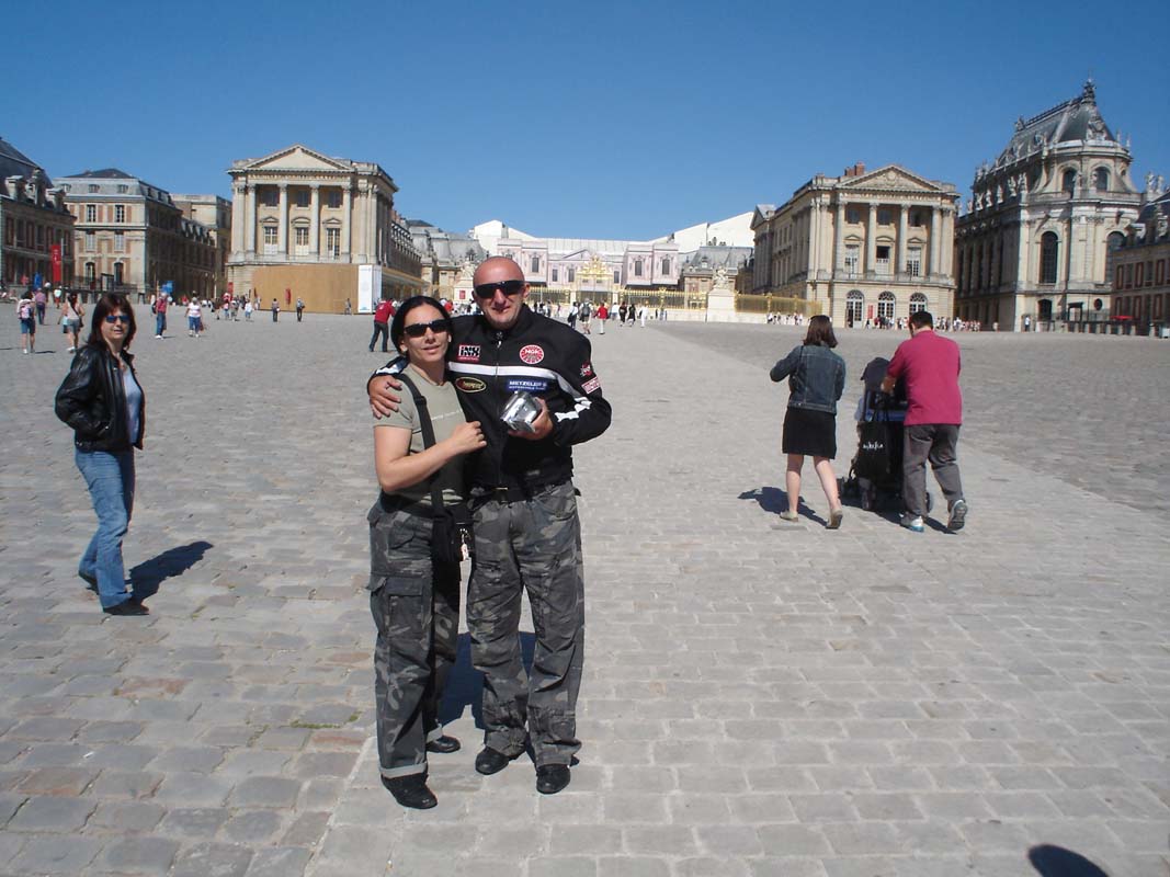 Srećemo jednog Rusa na prastaroj Hondi koji je dovdje prevalio samo 9000 km budući da je iz Vladivostoka. Čestitamo mu i ulazimo u dvorac. Prvo što se može zapaziti je to da riječ megalomanija pripada prošlosti jer ovako nešto ogromno nisu si mogli priuštiti današnji vladari i močnici. Čovjek se u ovom prostoru osjeća kao mrav.Versaj je bio rezidencija, sjedište vlade i apsolutno sjedište moći u Francuskoj.