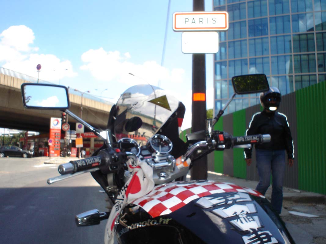 To se mijenja ulaskom u Francusku, gdje Vas na ulazu čeka ticket. Vozimo autocestom A1 k Parizu. Svi voze po propisima jer kazne su ovdje izuzetno visoke. Naš GPS nas upozorava na mobilne kamere čim bi prekoračili dozvoljenu brzinu. Oni koji motociklom krstare autocestama znaju što znači sjediti na motoru satima, pa tako i mi povremeno popuštamo i pomjeramo kazaljku brzinomjera bliže 200 km/h.