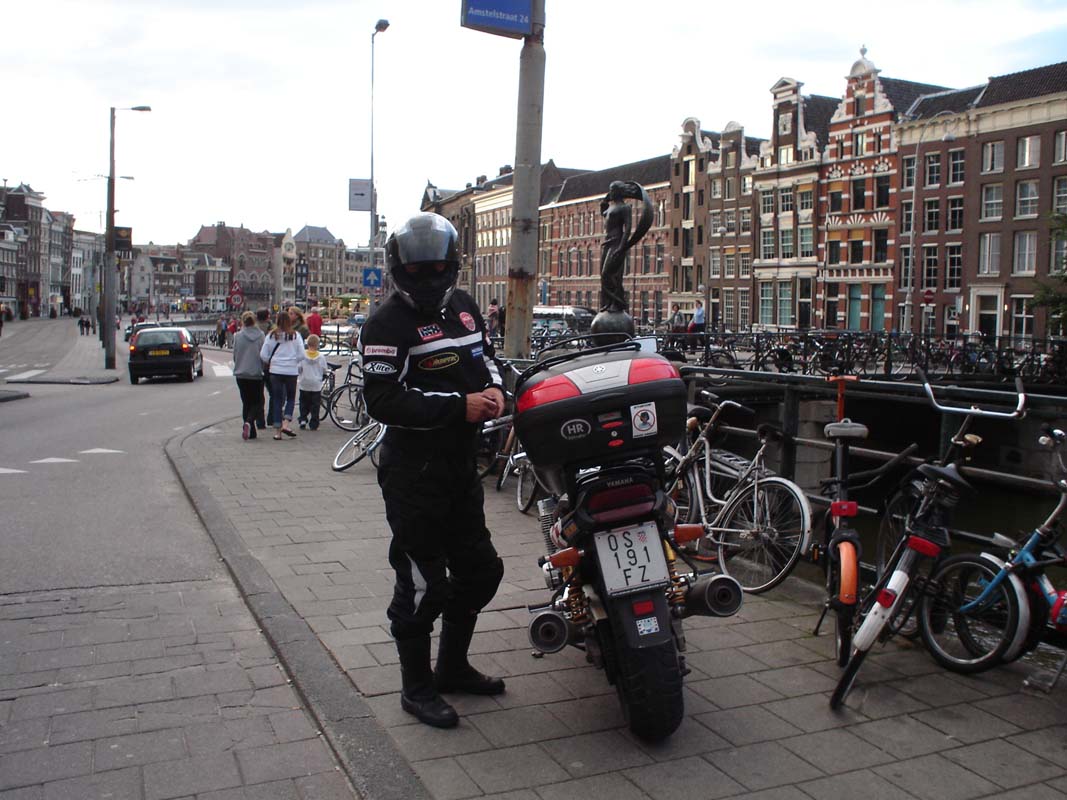 Nakon jutarnje kave i doručka grabimo ka Kolnu i Venlu mjestu na granici Njemačke s Nizozemskom. Stajemo tek da natočimo gorivo jer XJR je uvijek žedan motor. Naravno da smo u kišnjacima, vrijeme se nije oraspoložilo. I dalje nas mrko gleda, a povremeno i zalije od sveg srca. Nakon puno km ulazimo u Nl. Preko Eindhovena vozimo do Amsterdama i oko 14 h uz pomoć navigacije dolazimo u camping Zeeburg naše odredište i bazu za narednih pet dana. Smještaj u bungalovu ili kako ovdje kažu kabini morali smo bukirati još u Hrvatskoj prije polaska.