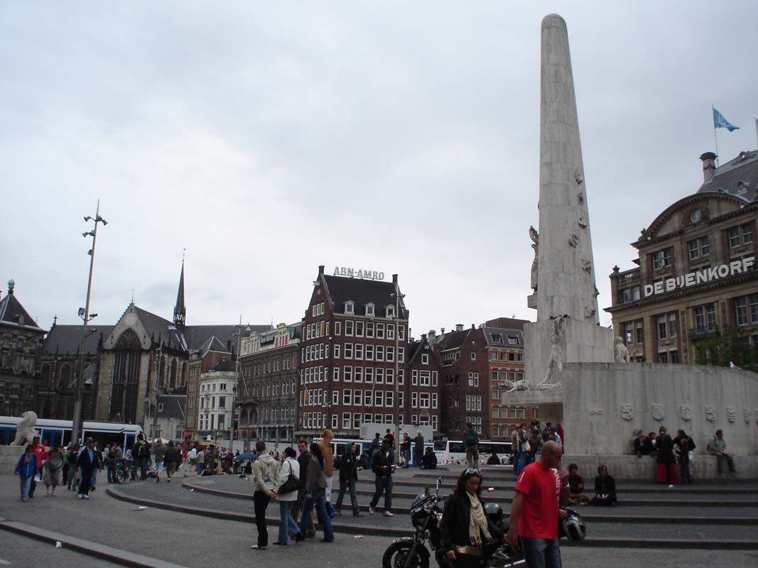 Odlazimo dalje do glavnog trga u samo srce Amsterdama koji nosi ime Dam i označava mjesto negdašnje brane na rijeci Amstel iz 13. st. Tu se parkiramo pod velikim obeliskom posvećenom žrtvama II svjetskog rata. Ovdje nije problem bicikl ili motocikl parkirati bilo gdje ali nedaj bože to pokušati automobilom. Istog trena podići će Vas pauk ili u najboljem slučaju dobit će te lisice na kotač.