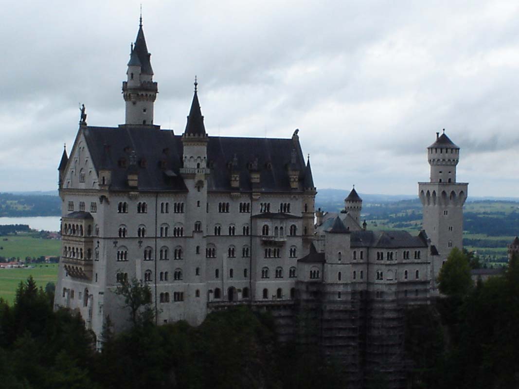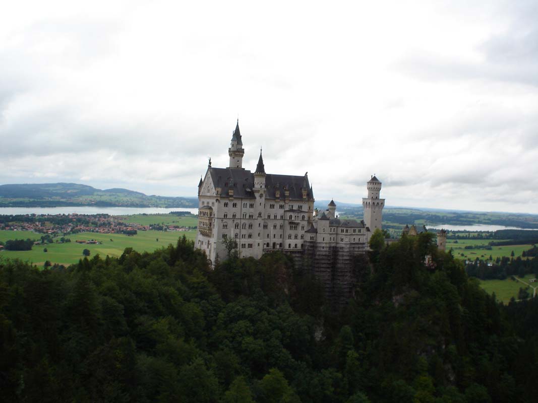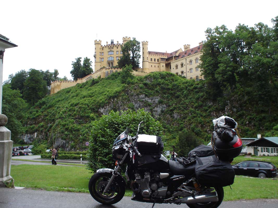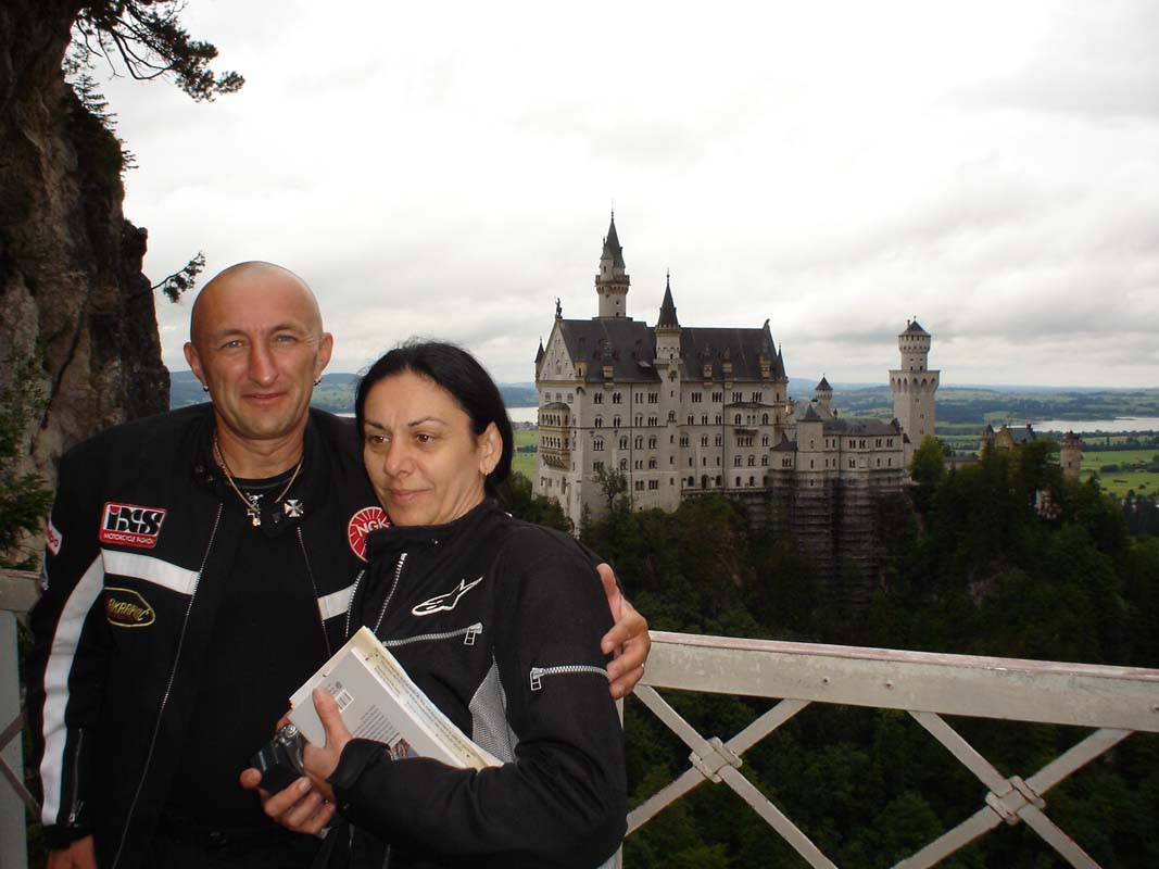 Napokon Fussen. Stajemo pod tendu jednog lokala svjesni da od campiranja nema niša. Smještaj jedva nalazimo u jednom malom obiteljskom hotelu (88 € sa doručkom). Jutro nakon potopa koristimo za posjet jednom od najljepših dvoraca Bavarske Neuswansteinu. Dakako kiša pada i dalje no ne predajemo se. Motor i opremu ostavljamo na čuvanom parkingu pa se turist. busom penjemo k dvorcu.