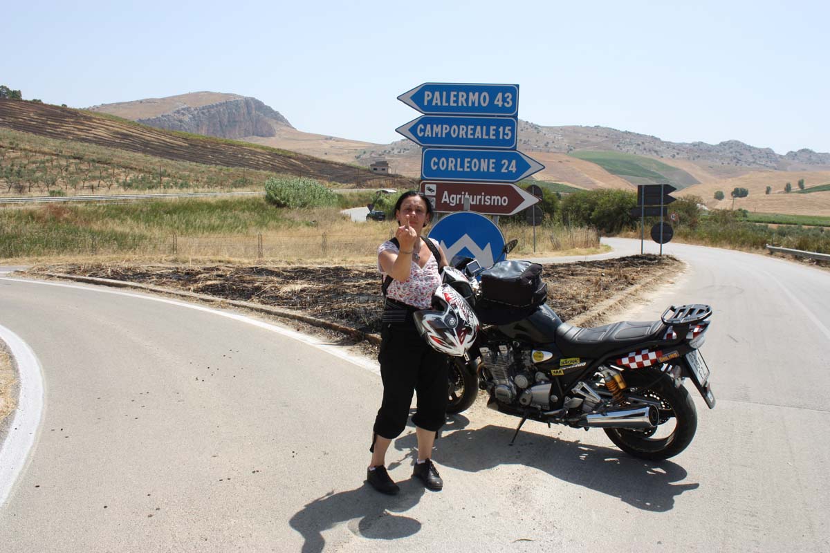 Nakon fotografiranja spuštamo se do Taormine. Ondje se dogovaramo o daljnjem planu puta. Alen će do Corleonea a mi do Agrigenta. To znači da ćemo se još 200-tinjak km voziti zajedno. Prolazimo dolinom brdskog lanca Enne po strašnoj vrućini. Na benzinskim postajama se skidamo i tuširamo bocama vode. I ja koji sam protivnik vožnje bez zaštitne opreme skidam jaknu i vežem je za torbu na koferu. Vrući afrički zrak koji dolazi preko mora pali sve pred sobom pa tako i nas. Gotovo da se ne može disati. Na benzinskoj postaji kod Caltanissetta opraštamo se sa Alenom. On na jednoj petlji odlazi put Corleonea. Gledam ga s nadvožnjaka u ovoj pustinji, izgleda kao da je sam na svijetu on i njegov BMW. Dižem vizir i kažem Nadi: tek smo se razišli a već mi nedostaje. Pravi lik taj Splićo.