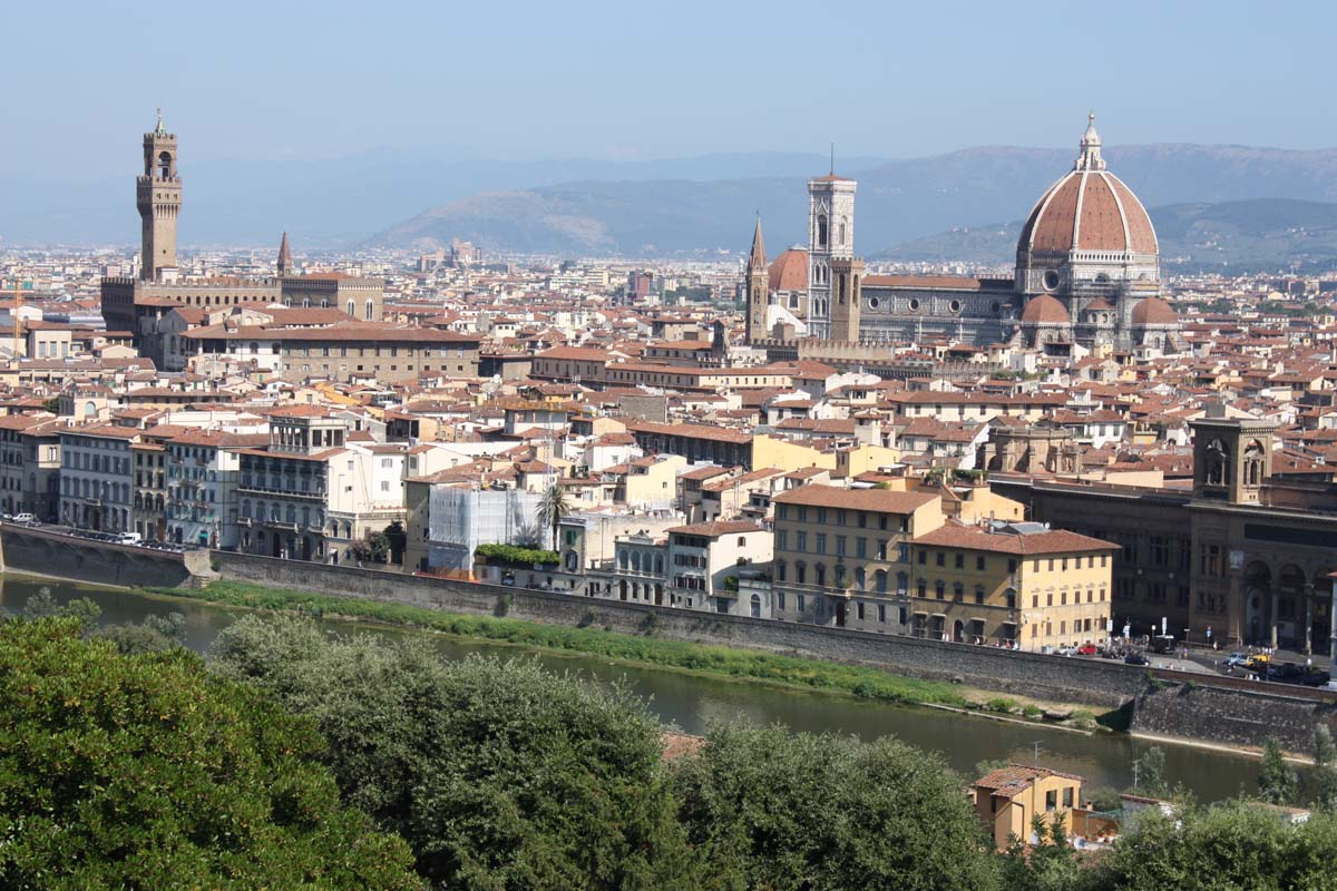 Prema planu ovdje bi trebali ostati nekoliko dana prvenstveno da upoznamo Firencu i njezinu okolicu u krugu od 50 – 100 km. Za danas nam je dosta, umorni smo pa odlazimo na terasu bara u campu. Odavdje se takođe dobro vidi grad pa uz pivo i pizzu gledamo kako se noć spušta nad jedan od najljepših gradova na svijetu. Ujutro se nakon kave i kraćeg dogovora spuštamo motorom u grad.Firenca je grad renesanse, Michelangelovog Davida, Botticelijevog rođenja Venere, Galilea i velikog pjesnika Dantea čijom je zaslugom nastao talianski književni jezik i gdje je rođena talijanska književnost. Parkiramo se na Piazi Santa Croce. Gužva koja ovdje vlada teško se riječima može opisati. Turista iz svih krajeva svijeta ima na svakom centimetru ovog grada. Pješice se probijamo kroz gužvu do Piaze del Duomo gdje se nalazi impozantna katedrala koju krasi otmjena ali robusna Brunnelleschijeva kupola.