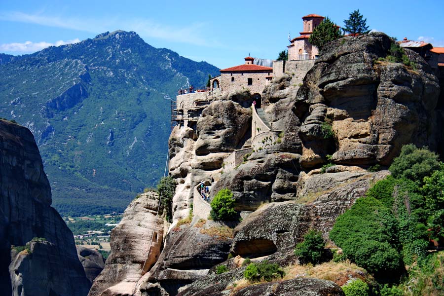 Usljed turskih devastacija u 17 st. mnogi su propali. Danas ih je naseljeno još samo 5 i do njih smo došli vijugavom cestom koja je izgrađena u novijoj povijesti. Duž ceste nalaze se mnogi štandovi sa suvenirima koji vabe posjetitelje. U podnožju Meteora mnogo je taverni dok se hoteli uglavnom nalaze u Kalambaki i selu Kastrakiju. U svom pohodu nastojali smo posjetiti večinu manastira za što smo izdvojili cijelo prijepodne. Odlična je činjenica da se do većine stiže vozilima a potom pješice po stepenicama isklesanim u stijeni. O pogledu i panoramama koji se pružaju s ove pozicije suvišno je trošiti riječi jer ovo savršenstvo se ubraja u svjetska čuda prirode ali i arhitekture u gotovo nepristupačnom okruženju. Mi smo se uspeli na jedan od najatraktivnijih manastira po imenu Varlaam.