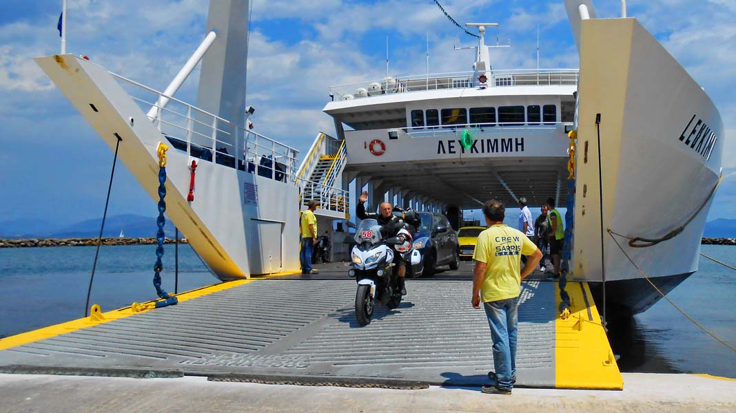 Jutro obasjano suncem bez i jednog oblačića izvlači nas iz kreveta na jutarnju kavu kod bučne gradske tržnice. Kako bi upoznali neko mjesto u kojem smo prvi puta, nastojimo jesti ili piti kavu u lokalnim gostionicama i birtijama u kojima je lokalno stanovništvo. Isklučivo zbog toga što se na taj način može steći najbolja slika o nekom gradiću,selu ili gradu i načinu života u njemu i što ga čini onim kakvo je. Nakon ugodno provedenog jutra u gradu vrijeme je za pokret. Nema ništa bolje od oblačenja moto opreme u klimatiziranoj sobi, a potom osvježen i odmoran sjesti na motor i krenuti na put. Pejzaži i panorame na putu do Igoumenitase više su no lijepi da bi vrhunac ljepote doživjeli oko otoka Lefkade. Točno u podne ukrcali smo se na trajekt za Lefikmi na samom jugu otoka Krfa. Srpasti Krf smjestio se u Jonskom moru i gotovo dotiče Albaniju.