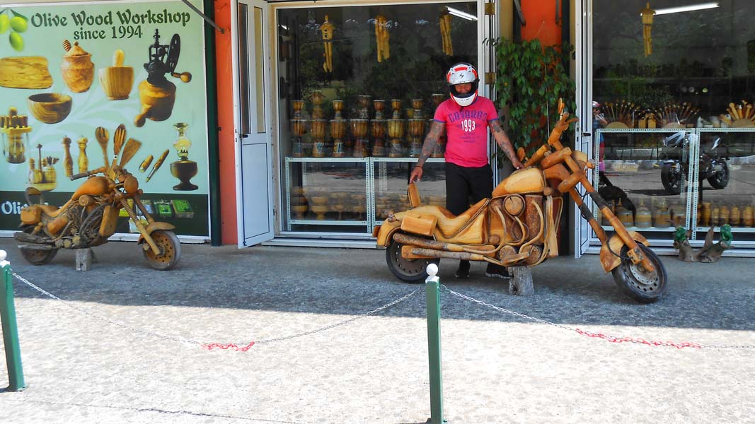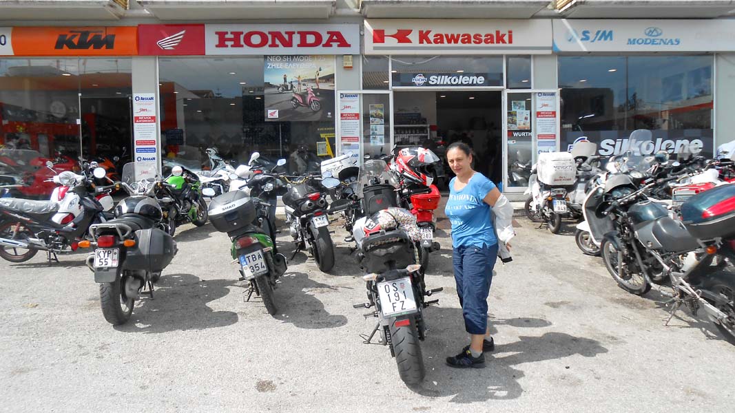 Prije no smo se pozdravili s ekipom iz servisa još u njhovoj trgovini kupujemo kišne rukavice grčkog proizvođača Nordkap po cijeni od 35 eu za par. Nikada nismo čuli za ovog proizvođača motoopreme a da je iz Grčke, međutim na netu vidimo da je to tvrtka sa 70-ogodišnjim iskustvom i tradicijom. Izvrsne rukavice po prihvatljivoj cijeni. Nakon“ dirljivog“ rastanka cijela ekipa servisa nam maše na pozdrav. Osječaj zadovoljstva je potpun već nakon prvih metara vožnje s novim lancem a pogled na crveno obrubljene Brembo kočione pločice koje se savršeno uklapaju s crvenom oprugom stražnjeg amortizera čine zadovoljstvo još večim. Eto koliko je malo potrebno da čovjek bude sretan.