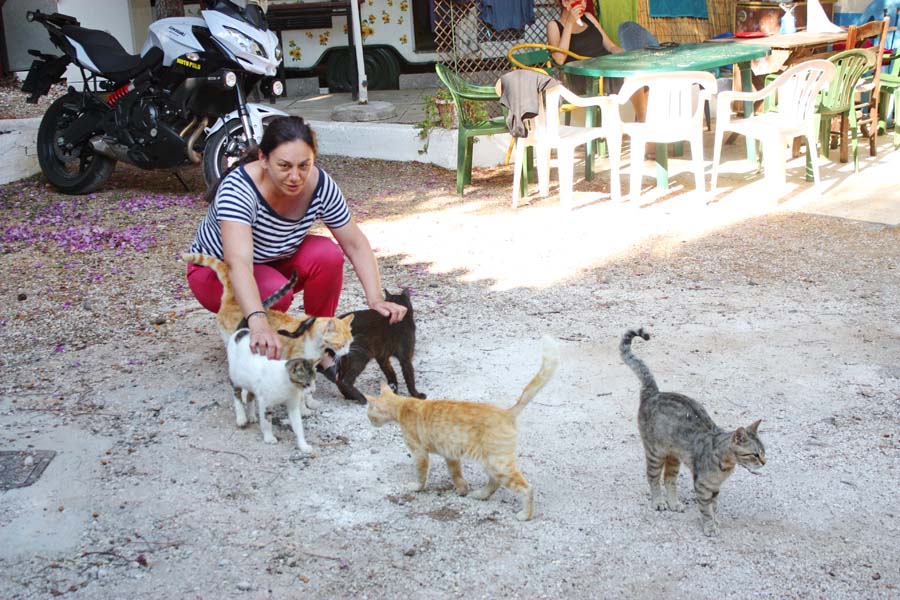 Dok smo sjedili na ovoj terasi cijelo vrijeme nam se oko nogu mazila preljepa žuto bijela maca. Kao što smo u uvodu ovog texta napisali mačke su u Grčkoj zaštićena životinjska vrsta, ali se nažalost nekontrolirano razmnožava tako da su grčka sela i gradovi prepuni ovih dragih bića čije se slatke njuškice nerijetko nalaze na naslovnicama turističkih vodiča i kataloga kao jedan od prepoznatljivih simbola Helenske republike.
