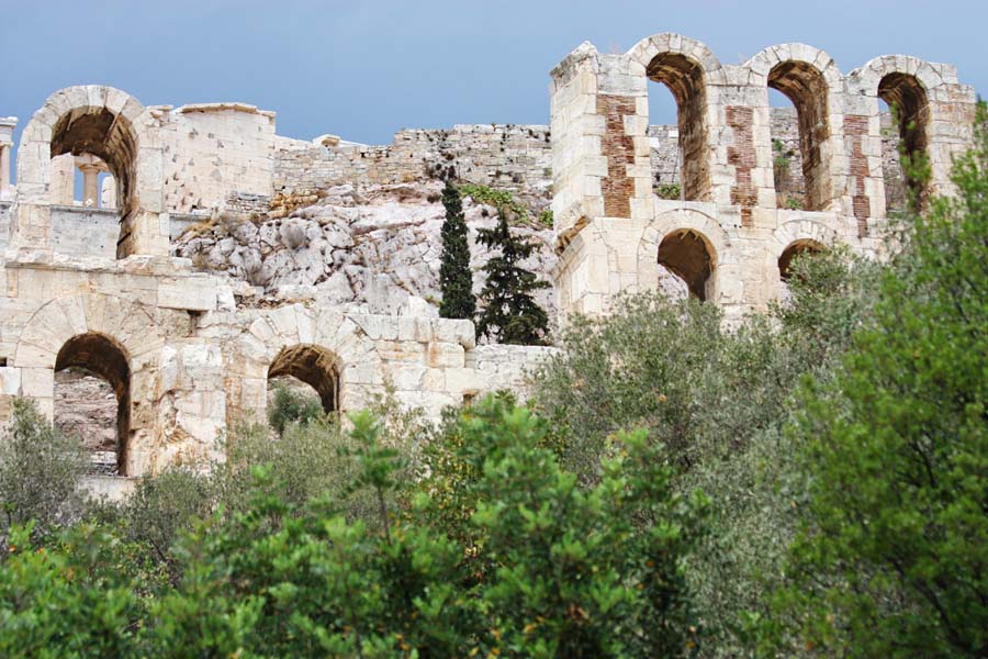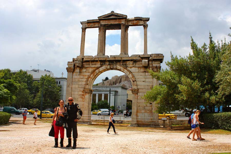 Kada je postalo podnošljivo izvirili smo kao miševi na ulicu i krenuli brzo u razgledanje znamenitosti jer nebo se i dalje prjeteći nadvilo nad gradom. Iznad nas je Pantheon koji izgleda veličanstveno. On je vrhunac drevne Grčke klasične umjetnosti. Prema mitologiji na mjestu Akropole Božica Atena borila se s Bogom mora Posejdonom za naklonost atenskih građana. Posejdon je na Akropoli napravio izvor dok je Atena građanima poklonila maslinu te su građani nju izabrali za zaštitnicu. I danas se u sjećanje na taj mit na brežuljku Erhtejon uzgaja stabalce masline. Ulicom ispod Akropole žurimo prema Hadrijanovom luku i Zeusovom hramu. Sve vrvi od turista a ukupnom ugođaju doprinose ulični svirači,desetine suvenirnica,taverni,restorana i kafića. Dionizijevom ulicom stigli smo do Hadrijanovog luka neposredno pred Zeusov hram.
