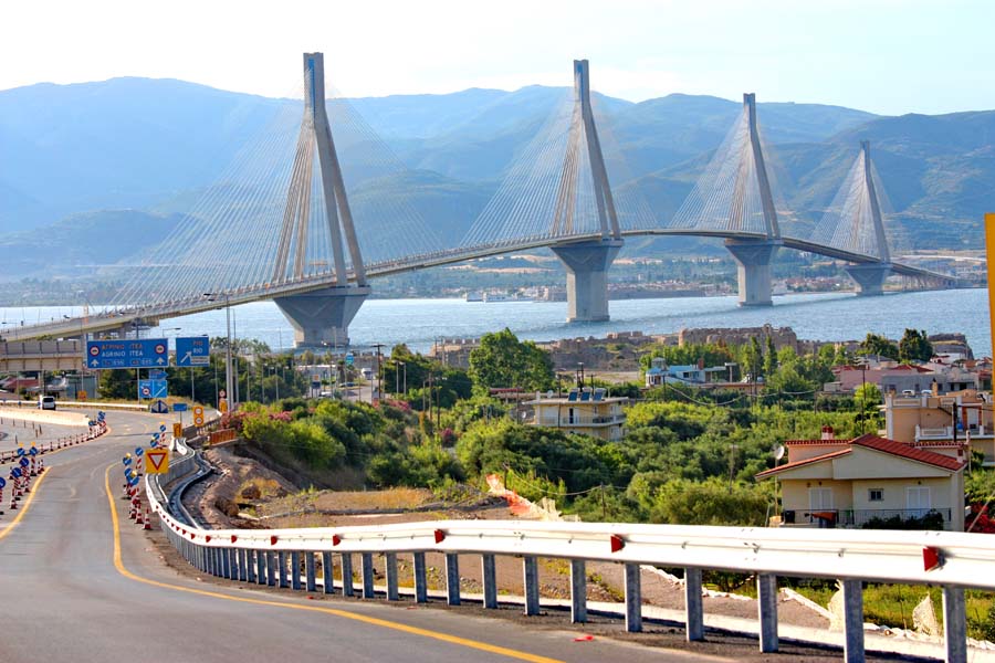 To je uspješno obavljeno tek 1893 god kada su francuski inženjeri dinamitom probili put kroz stijene. Prokop je dug 6 km a plovidba njime traje jedan sat. Krajolik je prelijep iako lije kao iz kabla. Izmjenju se nizine i planine,modro more,maslinici i vinogradi. Kiša popušta tek nakon što smo prošli pored Korinta, a oblaci koji nas u stopu sljede bili su više no dovoljan razlog da ne ulazimo u grad. Nastavili smo dugim korintskim zaljevom put Patrasa. Cesta je ovdje većim dijelom u rekonstrukciji pa nas to dosta usporava, no s druge strane to nam pruža jedinstvenu priliku uživati u predivnom krajoliku. Neposredno prije Patrasa cesta se odvaja prema mjestu Rio gdje dugački viseći most premošćuje patraški zaljev.