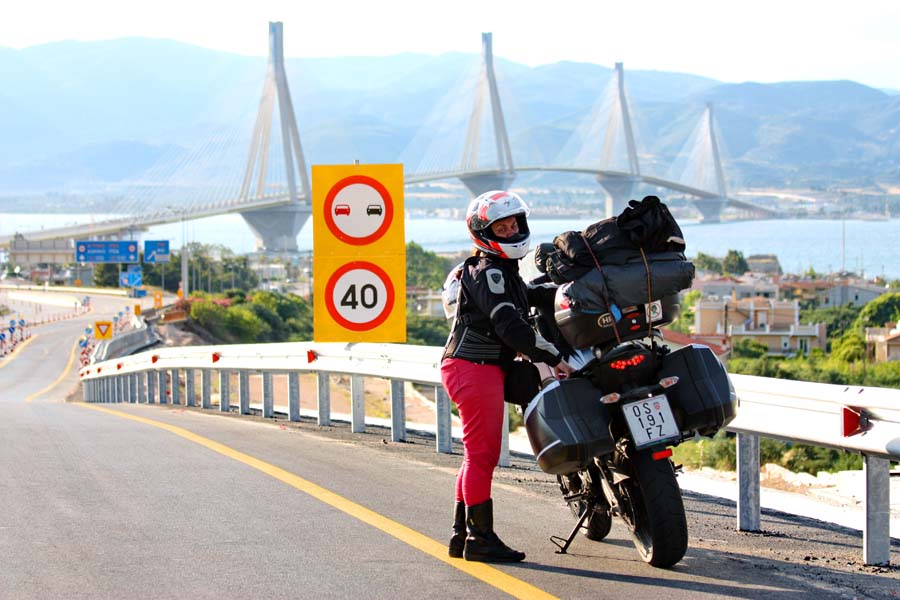 Vjetar je ovdje toliko snažan da nas doslovce baca od sredine ceste k ogradi. Bez obzira na to pogled s mosta na jednu i drugu stranu zaljeva oduzima dah. Mostarina za motocikl je 1,90 eu. automobil 13,30eu,kombi 30 eu dok je za autobus nevjerovatnih 65 eu. Ovako enormnu razliku u cijeni cestarina još nismo imali priliku nigdje doživjeti. Nakon ovog spektakularnog mosta odmor nalazimo na prvoj benz. postaji gdje širimo autokartu i donosimo odluku o daljnjoj srategiji puta. Danas su iza nas stotine i stotine kilometara puta no unatoč tome želimo dospjeti što bliže Igoumenitasu,trajektnoj luci u Jonskom moru,odakle bi trebali broditi do otoka Krfa. Veče se lagano spušta na zapadnu obalu Grčke dok crveno sunce tone u Jonsko more. Oko 22 h(sat razlike je Grčka u +) stižemo u Amfilohiju, lučki gradić na obali Ambracijskog zaljeva. Prilično umorni nalazimo hotel Oscar na samoj rivi(35 eu dv. kr. soba s klimom i balkonom s pogledom na zaljev). Nakon tuša uživamo uz ledene koktele na terasi jednog caffa .