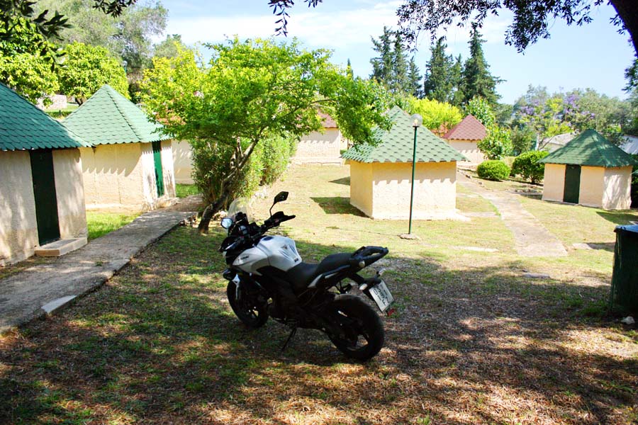 S jedne strane tirkizno se more mješa sa plavim nebom i gotovo je nemoguće uočiti liniju koja ih razdvaja nego se stapaju na horizontu. Sa druge strane preko reljefa brda i kotlina pogled seže do 35 km udaljenog grada Krfa. Nakon što smo se spustili sa utvrde izgubljenu tekućinu nadoknađujemo kriglom ledenog piva u caffu u odnožju ove stijene. Po povratku u kamp u obližnjoj trgovini uz cestu kupujemo konzerve i vreću krute hrane za naše mačje prijatelje. Krajnje je vrijeme za predah pa odlazimo do plaže u Dassiji. Iako je tek prva polovina lipnja temperatura mora doseže 26 celzijusa. Nakon morskih gušta u campu spravljamo večeru. U Grčkoj su kampovi većinom kao što je i ovdje slučaj opremljeni hladnjacima,plinskim kuhalima te posuđem,u biti cijelim kuhinjama ispod nadsvođenih terasa. Njihova cijena uračunata je u cijenu boravka u kampu.