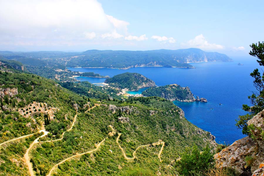 Put je to kroz nepregledne nasade maslina i plodnih polja. Maslina je ovdje više nego li u bilo kojem dijelu mediterana. Vozeći se uskom brdskom cestom uskoro dolazimo do Liapadesa,sela na vrhu brijega. Opojni miris limuna i naranči koji su već potpuno zreli širi se cijelim mjestom. Šetnja tijesnim uličicama postaje pravo zadovoljstvo dok grane limuna i naranči svinute preko ograda nude svoje plodove prolaznicima. Naše današnje odredište su razvedene uvale Paleokastritse do kojih stižemo vijugavom i zahtjevnom cestom preko Lakonesa, još jednog fantastičnog brdskog sela. Odavde s tkzv. balkona Jonskog mora uživamo u gotovo nestvarnoj panorami stjenovitih uvala na čijim su obalama pješćane plaže koje se stapaju s tirkizno plavim morem.