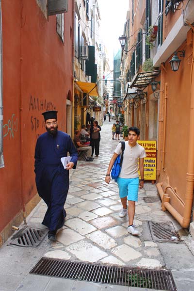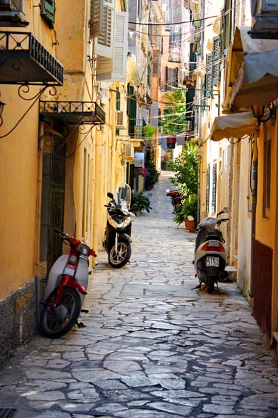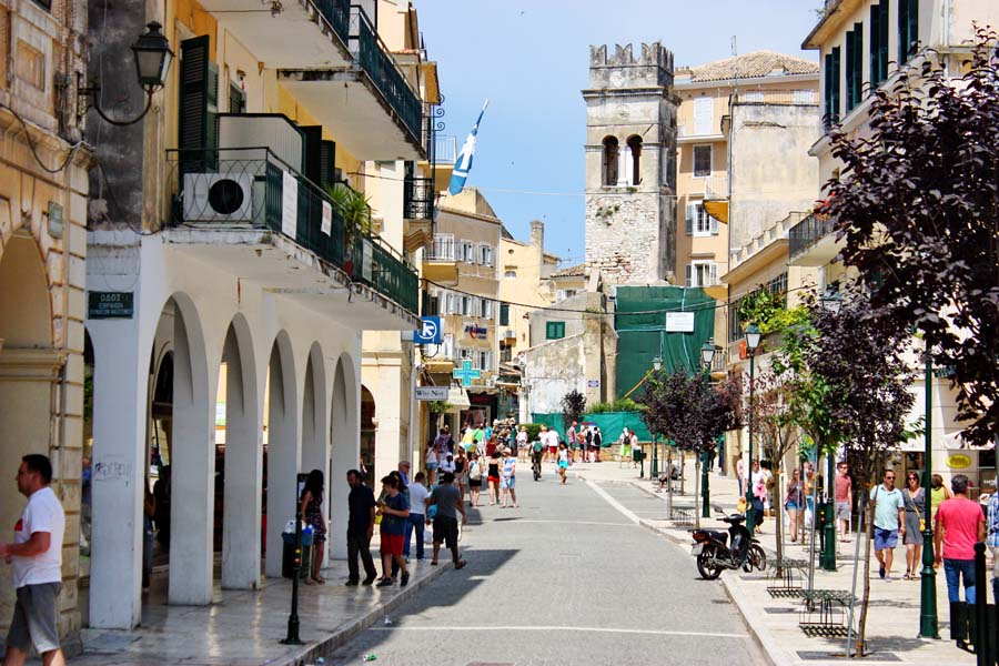 Nakon što smo stvari pobacali po kućici, i pod tušem saprali prašinu sa puta odlazimo do 8 km udaljenog grada Krfa. Krf, Kerkira, Corfu ili kako ga još sve nazivaju ubraja se među najljepše gradove u Grčkoj. Krf je osobit otok i za same grke jer na njemu su talijanski, francuski ali i britanski utjecaj dali posebno ozračje. Parkiramo se u strogom centru i uskim kamenom popločenim ulicama dajemo se u istaživanje ovoga grada. U lokalnoj Pizzeriji uživamo u slasnoj pizzi i pivu Mithos. Grad Krf dao bi se porediti jedino sa čuvenim San Marinom, Nicom ili Saint Tropeom. Ulice su prepune suvenirnica, prodavaonica autohtonih rukotvorina, kožne galanterije i domaćih agrikulturalnih trgovina. Vrlo je slično kao u toskanskim biserima Monte Pulcianu, Montalchiniju, Massi Martimi ili San Girmianu.