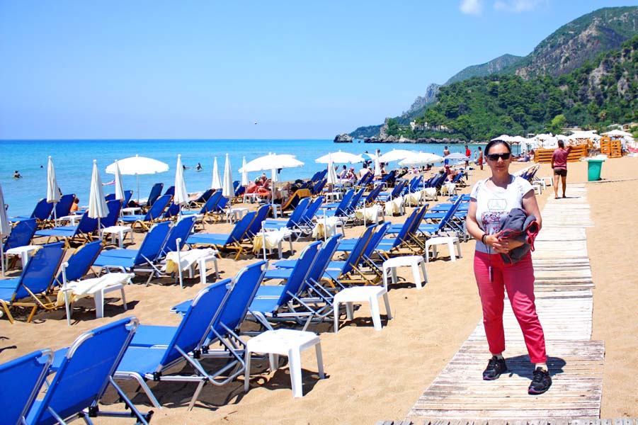 Ostatak dana provodimo na ulicama Krfa gdje smo upravo otkrili kafić u kojem poslužuju piće na uličnim skalama po kojima su razbacani jastuci. Koliko god puta šetali ovim gradom on nas iznova iznenadi svojim šarmom i ljepotom. Idućeg dana planinskom cestom odlazimo do Palekasa. Ovo romantično seoce nalazi se 13 km od grada. Iznad sela je postavljen vidikovac „Carevo Prjestolje“ na kojem se rado zaustavljao Njemački car Vilim II. Pogled odavde seže do Krfa i dalje do Albanske obale. S ove landscape točke spuštamo se do jedne od najpoznatijih otočkih plaža Gilfade. Prekrasna pješčana plaža pruža se duž jedne od mnogih uvala i laguna zapadne obale otoka. Iako vanjska temperatura trenutno ne prelazi 30 cel. pijesak na plaži je užaren do te mjere da se doslovce nemože hodati po njemu. Zbog toga su uzduž cijele plaže postavljeni drveni pontoni. Grčko sunce doista je drugačije nego drugdje. Ako mu se bez zaštite izlažete samo par minuta biti će te pečeni poput odojka. More je u skladu s tim pa tako njegova temperatura nije puno drugačija od temperature zraka. Jedino riješenje je skakanje u more svakih 5. min. i česti odlazak na osvježenje u beach bar ispod trskom pokrivene sjenice.