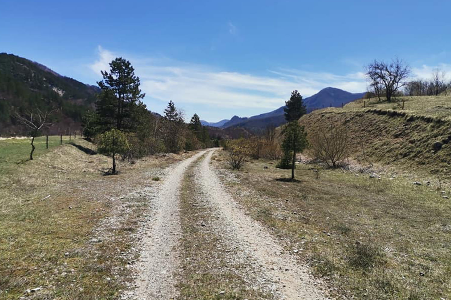 Krenuli smo iz Knina prema graničnom prijelazu Strmica. Neposredno prije same granice postoji skretanje lijevo prema željezničkoj stanici gdje smo skrenuli i samo pratili zadani put koji većim dijelom prati tzv. unsku prugu i rijeku Butižnicu. Dolaskom do stare napuštene ciglane ujedno smo došli i do kraja asfalta. Dalje nastavljamo makadamom dok cesta u više navrata presijeca državnu granicu, tako da se čas vozimo kroz Hrvatsku, čas kroz Bosnu. Dolaskom u Lički