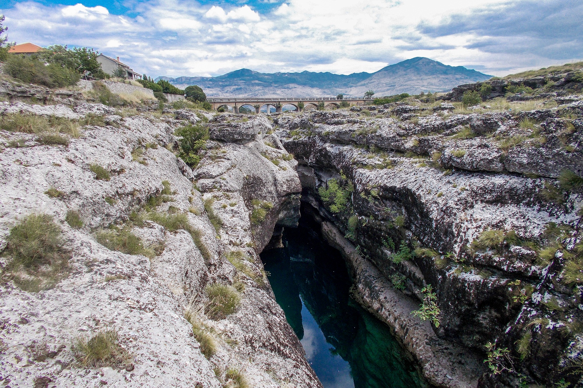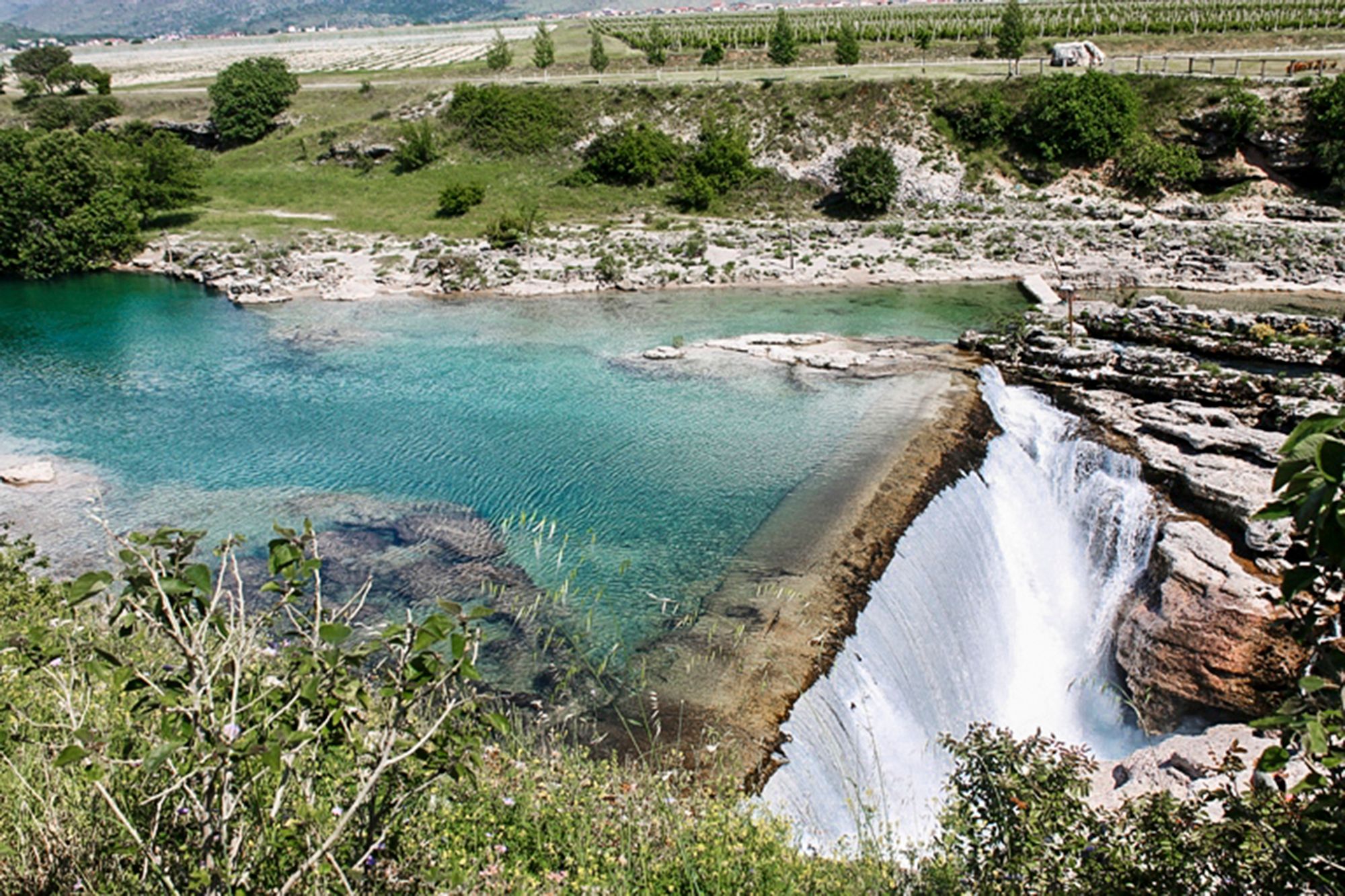 Vraćamo se rijeci i dolazimo na granicu s Crnom Gorom. Na istom mjestu granicu prelazimo i mi i rijeka koja se od sada zove Cijevna. Ponovno smo među bokovima okolnih brda dok vozimo pored nje prema Podgorici. Samo što sada nasadi loze i smokve pojačavaju arome mediterana dok planinski mirisi ostaju daleko iza nas. Izlaskom na Ćemovsko polje Cijevna nas iznenađuje s još jednim čudom prirode. Kod sela Tuzi rijeka je u mekoj podlozi izdubila sebi još jedan kanjon kojeg ovdje nazivaju Crnogorski Kolorado. Fascinantna je širina kanjona i rijeke na tom mjestu koja iznosi samo jedan metar, dok dubina doseže i preko deset metara. Taj fenomen izgleda poput cijevi i drži se da je zbog toga Cijevna i dobila ime. A nakon toga slap, Mala Nijagara. Bistra voda obrušava se s dva-tri metra visine i u vrtlogu raspršenih kapi smiruje se i širi među pitomim obalama. Zahvaljujući bliskom rastojanju od Podgorice ovaj donji tok obiluje brojnim kupalištima koja lokalno stanovništvo koristi za dnevni odmor.
