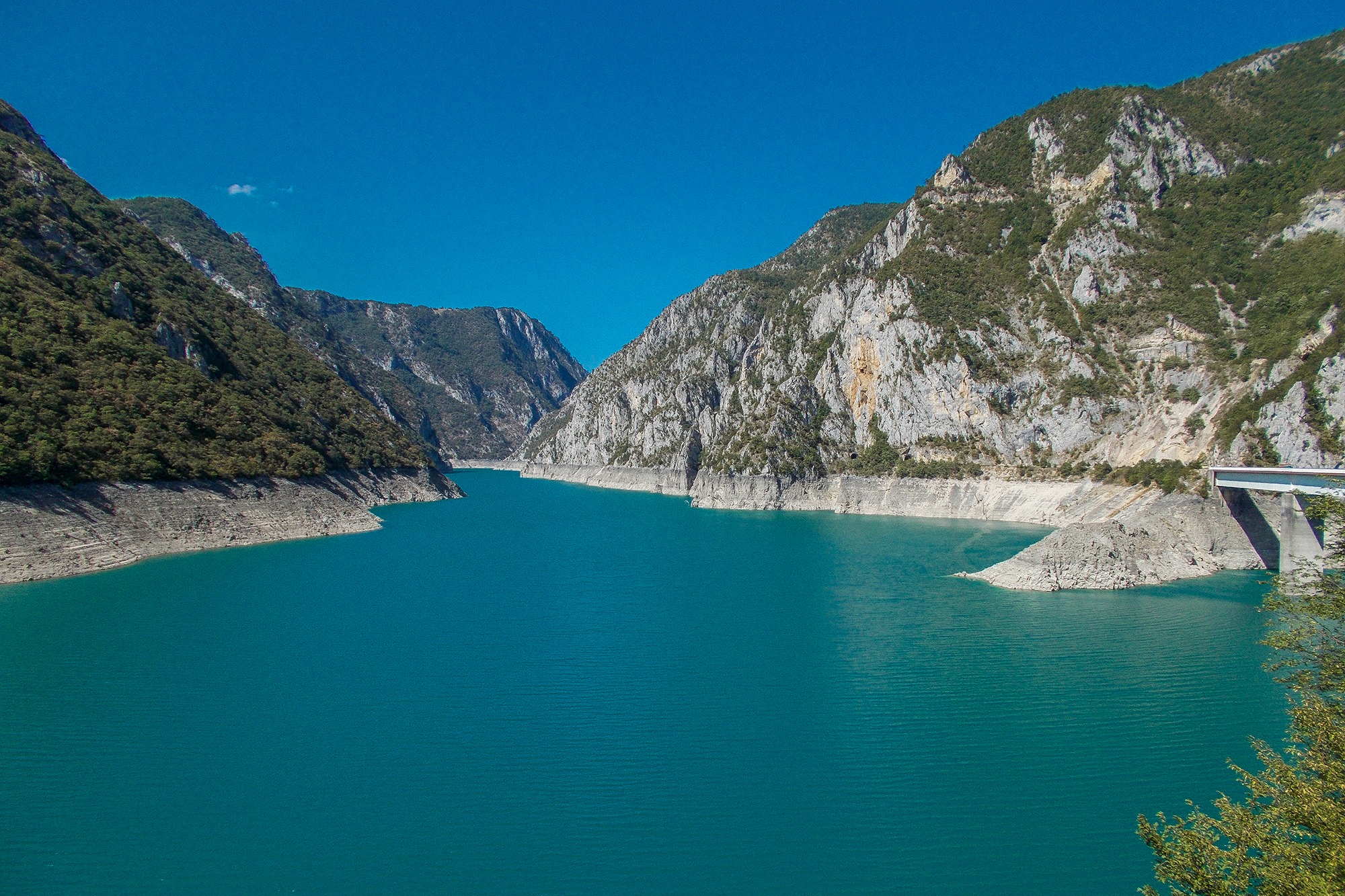 Nakon dužeg odmora i okrijepe krenuli smo prema samom jezeru. Koliko neke stvari mogu biti nestvarne, poput plave boje ovog jezera i zelene boje okolnih šuma, da ih čovjek jednostavno ne može ni opisati. Prelazimo most preko jednog rukavca i nastavljamo se kretati prema brani. Cesta vijuga uz obalu jezera dok mi poskakujemo na mnogim neravninama i rupama. I tako 15-ak kilometara sve do 220 metara visoke brane gdje se zaustavljamo radi slikanja.