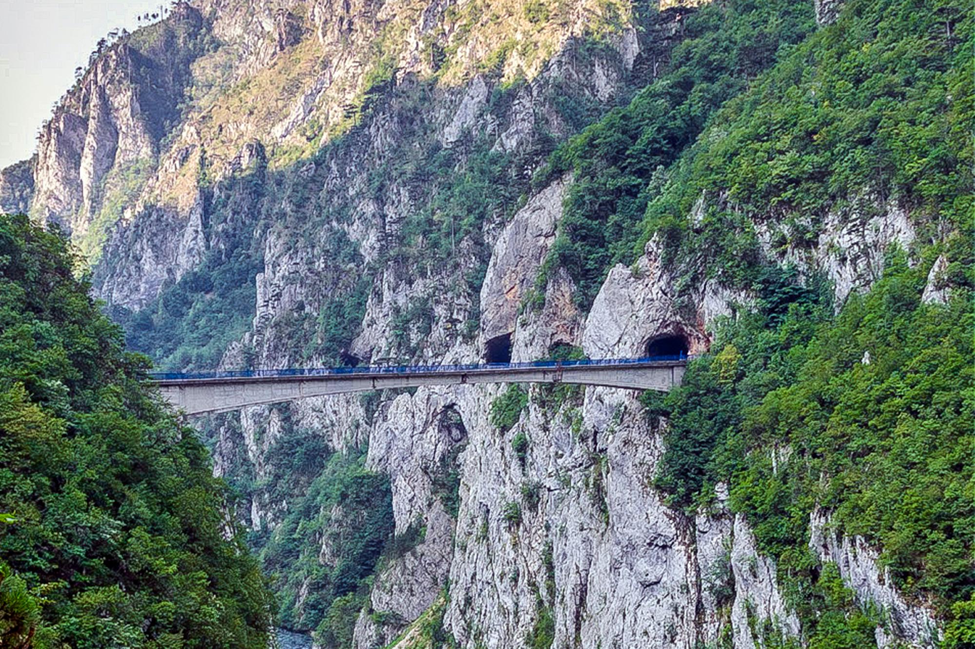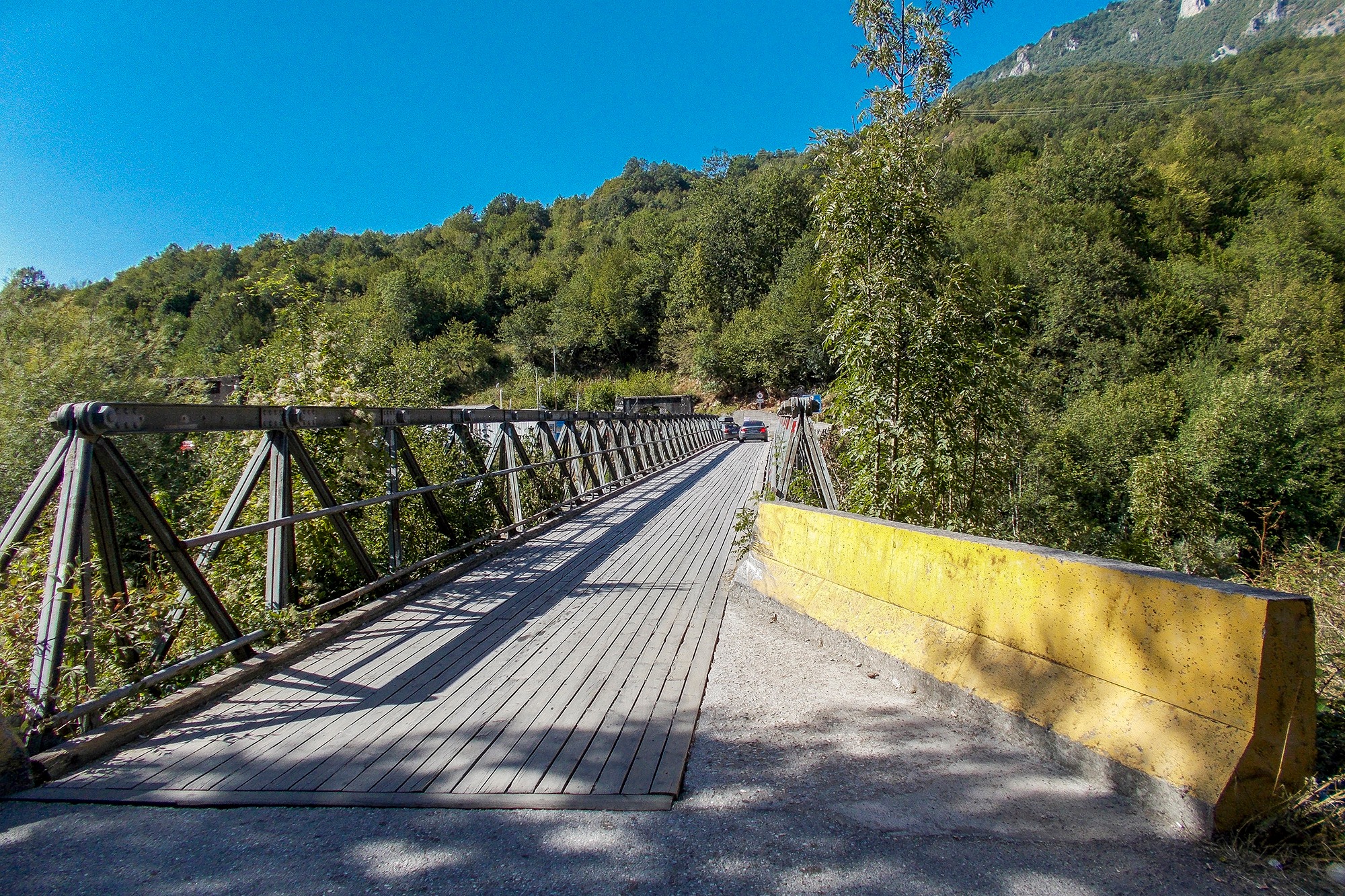 Da uzbuđenjima ne dođe prebrzo kraj pobrinuo se most koji spaja dvije države, Crnu Goru i Bosnu i Hercegovinu. Most potječe iz vremena kada je UNPROFOR tu boravio i kada su ga napravili za svoje potrebe, a danas služi za međunarodni promet putnika i roba. Nije nam bilo nimalo ugodno kada smo doslovno morali sići s motora, izgurati ga s ceste, da bi jedan autobus mogao savladati oštar zavoj na samom silasku s mosta. I taman kada pomisliš krenuti dalje naiđe auto iz suprotnog smjera. Nakon toga ti se stvori jedan iza leđa i trubi da kreneš, a nemaš kud. Tu je još jedan kombi s prikolicom i čamcima za rafting. Blago rečeno, jedan mali kaos.