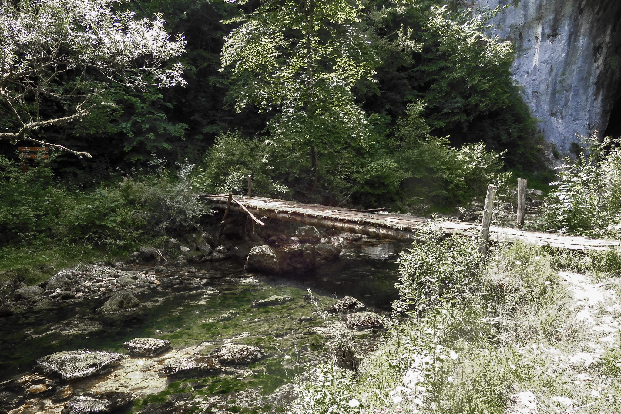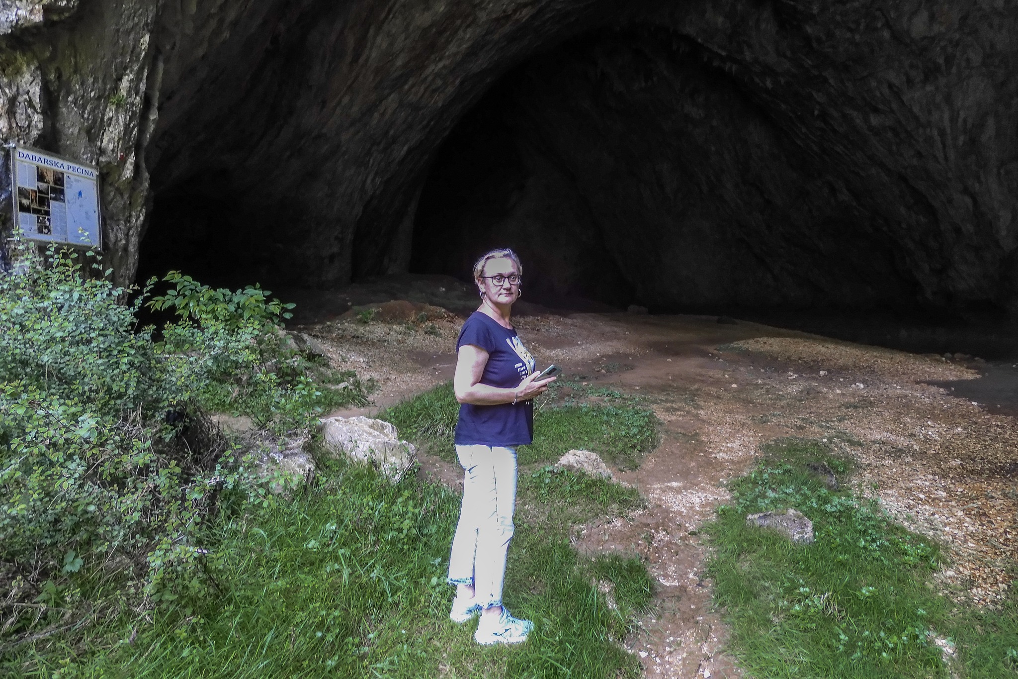 Da bi vidjeli i Dabarsku pećinu morali smo prijeći jedan drveni mostić pomalo obrastao mahovinom. Kao u nekom filmu. I na brzinu eto nas pred veličanstvenim ulazom visokim skoro dvadeset metara. Doslovno nas je uvukao unutra. Prva dvorana s visokim stropom nas je očarala. Upalili smo lampice na mobitelima i magija je počela. Uživali smo u svakom kutku i svakoj šupljini, potajno se nadajući da ćemo ugledati i pokojeg šišmiša. Uspjeli smo tako ući do možda nekih 100 metara dubine i naišli smo na špiljsko jezerce. Dalje bez profesionalne speleološke opreme je nemoguće ući, ali mi smo zadovoljan i s ovime što smo doživjeli.