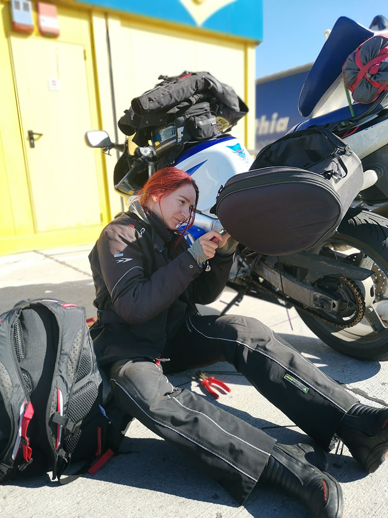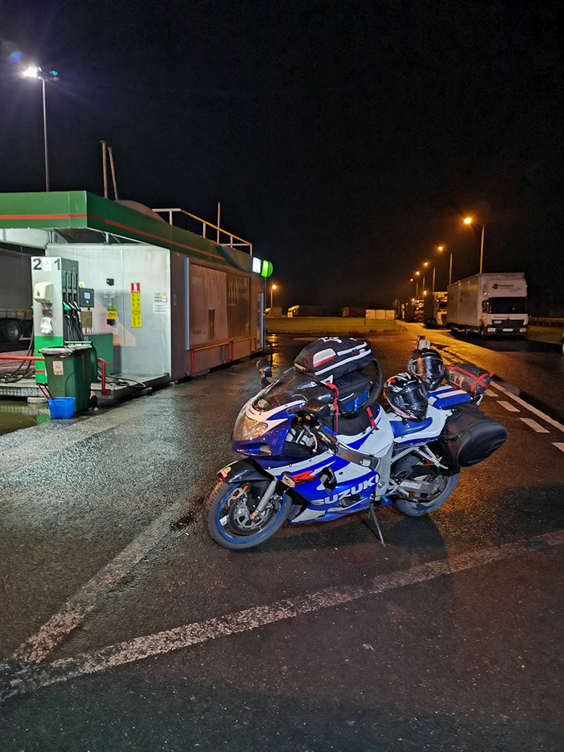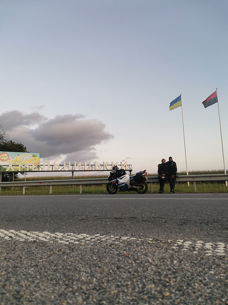 150 kilometara nove ceste bez rupa bila je cista uzivancija osim tu i tamo po kojeg zastoja zbog radova na cesti i dolazimo do skretanja prema granicnom prijelazu. Ponovo nocna mora sljedecih 90 kilometara bez ceste bez icega ponovno truskanje za nas nekoliko sati da bi mi se 10 ak kilometara prije granicnog prijelaza poceo gasiti motor kad bi pustio gas i nekako se dovucemo na granicni prijelaz opet vojska pregledava motocikl dali rade pokazivaci smjera, svjetla,gume kao na tehnickom pregledu u suprotnom vam ne daju da napustite drzavu i nakon tih maltretiranja sat ipo vremena konacno nam da znak rukom da mozemo nastaviti prema Moldavskoj granici medjutim na okret kljuca uopce nema kontakta i gleda me vojnik sta se dogadja ja ga pitam WC da nebi skontao da mi ne valja motor i odguram se 10ak metara nize i padne mi na pamet nakon svih ovih rupa mora biti nesto s akumulatorom i izvadin svoj mini alat dignem sjedalo, od vibracija se odvidao vijak na minus polu vratim sve nazad upalimo Suzu i gas dalje.