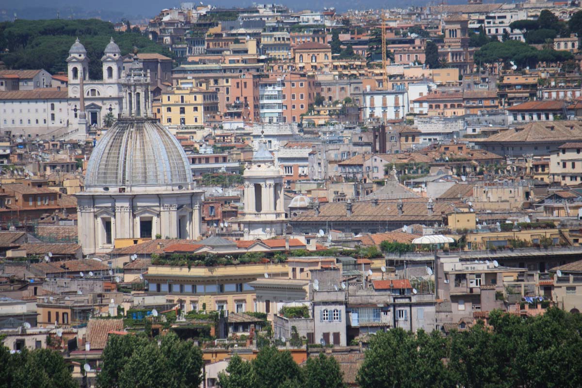 Dugo čekamo u redu za ulazak u Baziliku. Tek što smo se domogli ulaza mene unutra ne puštaju zaštitari zbog prekratkih rukava na majici. Morat ću se zadovoljiti šetnjom van sakralnih objekata unutar Vatikana. Razočaran ali ne i nesretan fotografiram ono što mi je dostupno a toga je doista mnogo. Vruće je 38 C, gomila se tiska u redu za ulazak u crkvu a ja gledam naše sljedeće odredište na karti vječnog grada. Odlazimo brdskom cestom do Gianicola na vrh hrpta koji Vatikan odvaja od Trasteverea i odakle se pružaju najljepši pogledi na grad. Ovdje je također prekrasan park u kojem se održavaju lutkarske predstave. Trgom dominira konjanički spomenik Garibaldiju i njegovoj supruzi Aniti koja je ovdje sahranjena.