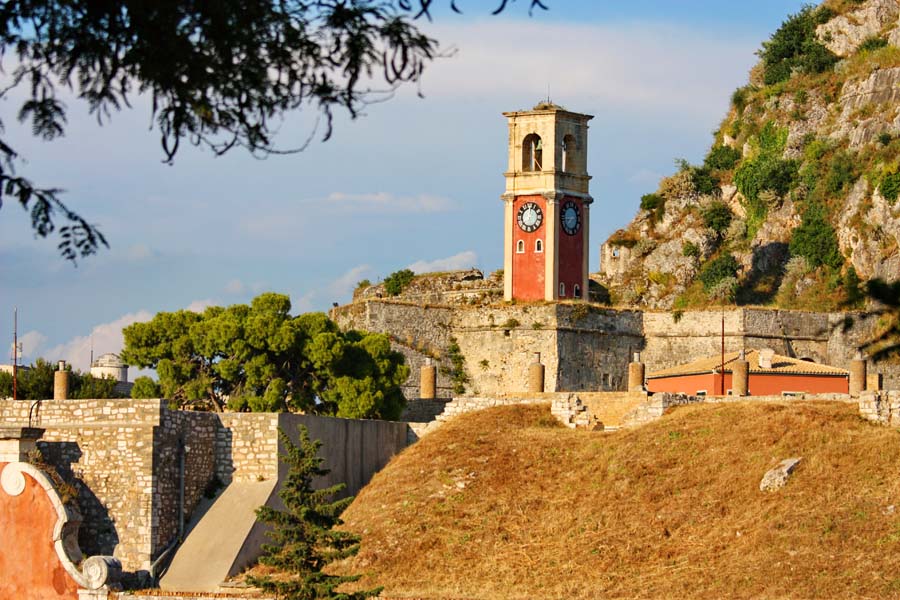 Nova utvrda na kojoj se trenutno nalazimo izgrađena je između 1576 i 1645. god. a sa starom tvrđavom povezana je podzemnim tunelima. Krunu pogleda na grad i njegovu vizuru čine tornjevi crkava,posebno onaj raskošne crkve Agios Spiridon koja se nalazi usred mnoštva starih kuća i trgova. Nakon što smo oči odmorili ovim ljepim prizorom grada i njegove osobnosti spuštamo se s utvrde do pizzerije u centru gdje njezin vlasnik već po običaju naganja žgoljavog konobara vičući „Nikola. . Nikola“. . !!!!!!Nikola se jadan sapliće oko gusto raspoređenih stolova što stvara komičnu sliku na terasi.