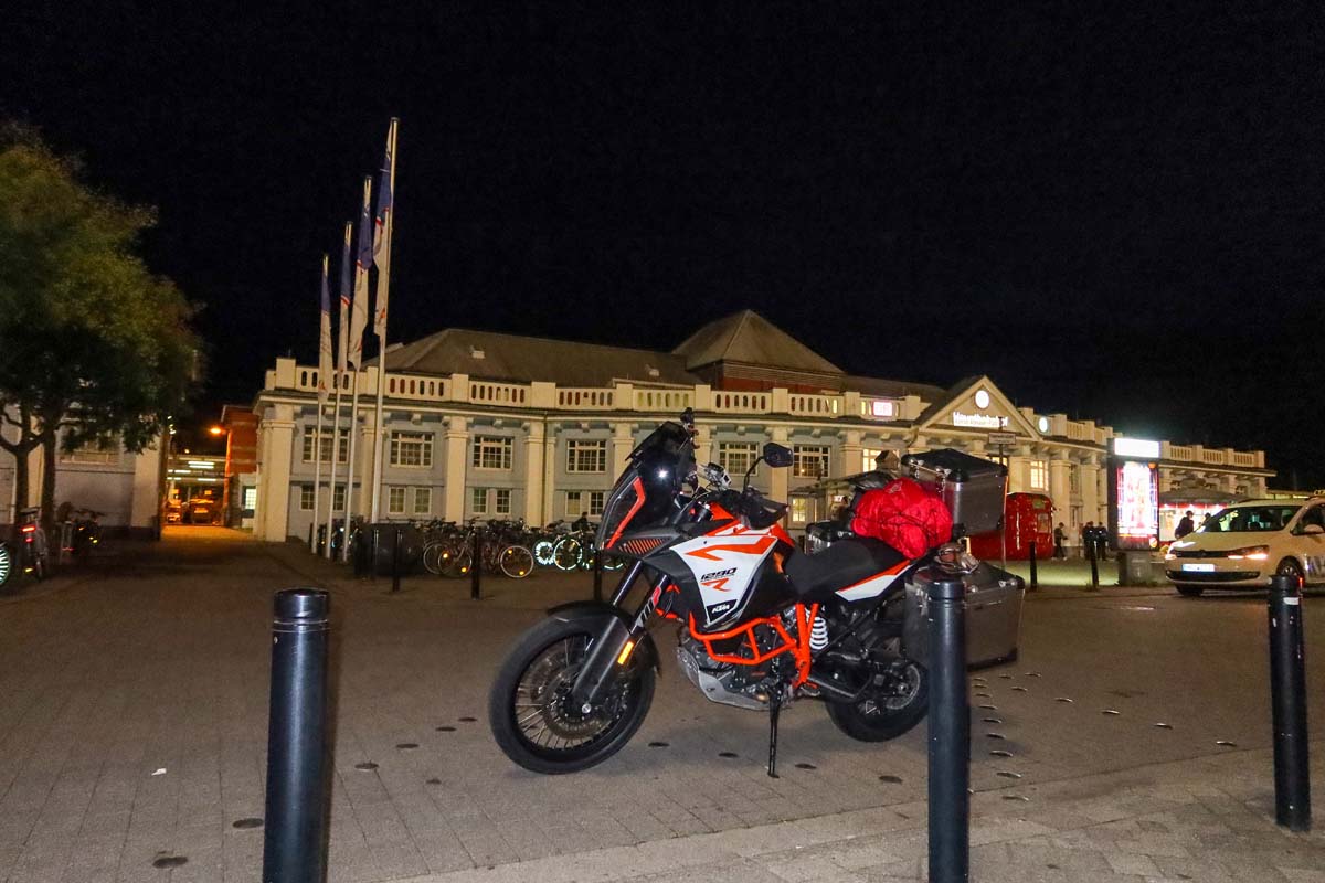 Sve što je lijepo kratko traje, pa autobahn završava i ulazim u Rostock oko deset sati uvečer. Zaustavljam se ispred željezničkog kolodvora i večerajući sendvič koji se od jutra vozi sa mnom pregledavam aplikaciju za trajekte. Pomislim kako bi ovo mogla biti duga noć jer izgleda da je popunjen jutarnji trajekt za Švedsku, a sljedeći ide tek za dva dana. Sjedam na motor i krećem u luku gdje ovako kasno nema nikoga. Opet otvaram AFerry aplikaciju i srećom nalazim last minute opciju za 43€ iz luke Travemunde kod Lubecka.
